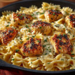 Die CREMIGE HÄHNCHEN-FARFALLE-PFANNE ist das perfekte Gericht für alle, die sich nach einer herzhaften und gleichzeitig einfachen Mahlzeit sehnen. Mit saftigem Hühnchen, zarten Farfalle-Nudeln und einer cremigen Soße, die harmonisch mit frischen Kräutern und Gewürzen kombiniert wird, ist dieses Rezept nicht nur schmackhaft, sondern auch schnell zubereitet. Es eignet sich hervorragend für ein gemütliches Abendessen mit der Familie oder für Gäste. Lassen Sie sich von den Aromen verführen und probieren Sie dieses köstliche Rezept noch heute aus!