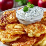 Die goldenen Apfelküchle mit Quark sind wie ein betörendes Gemälde auf einem Teller, das nur darauf wartet, von Ihnen genossen zu werden. Wenn Sie hineinbeißen, entfalten sich die Aromen von süßen Äpfeln und zartem Quark – eine himmlische Kombination, die die Geschmacksknospen zum Tanzen bringt. Die Außenseite ist knusprig, während das Innere weich und saftig bleibt – ein Genuss für alle Sinne!
