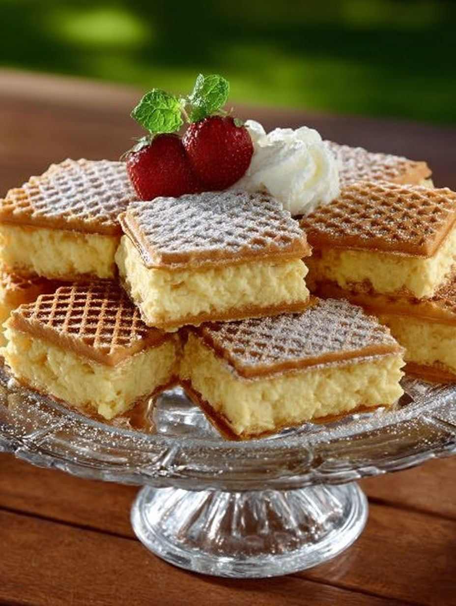 - Weitere Waffeln darauf stapeln und den Prozess wiederholen.