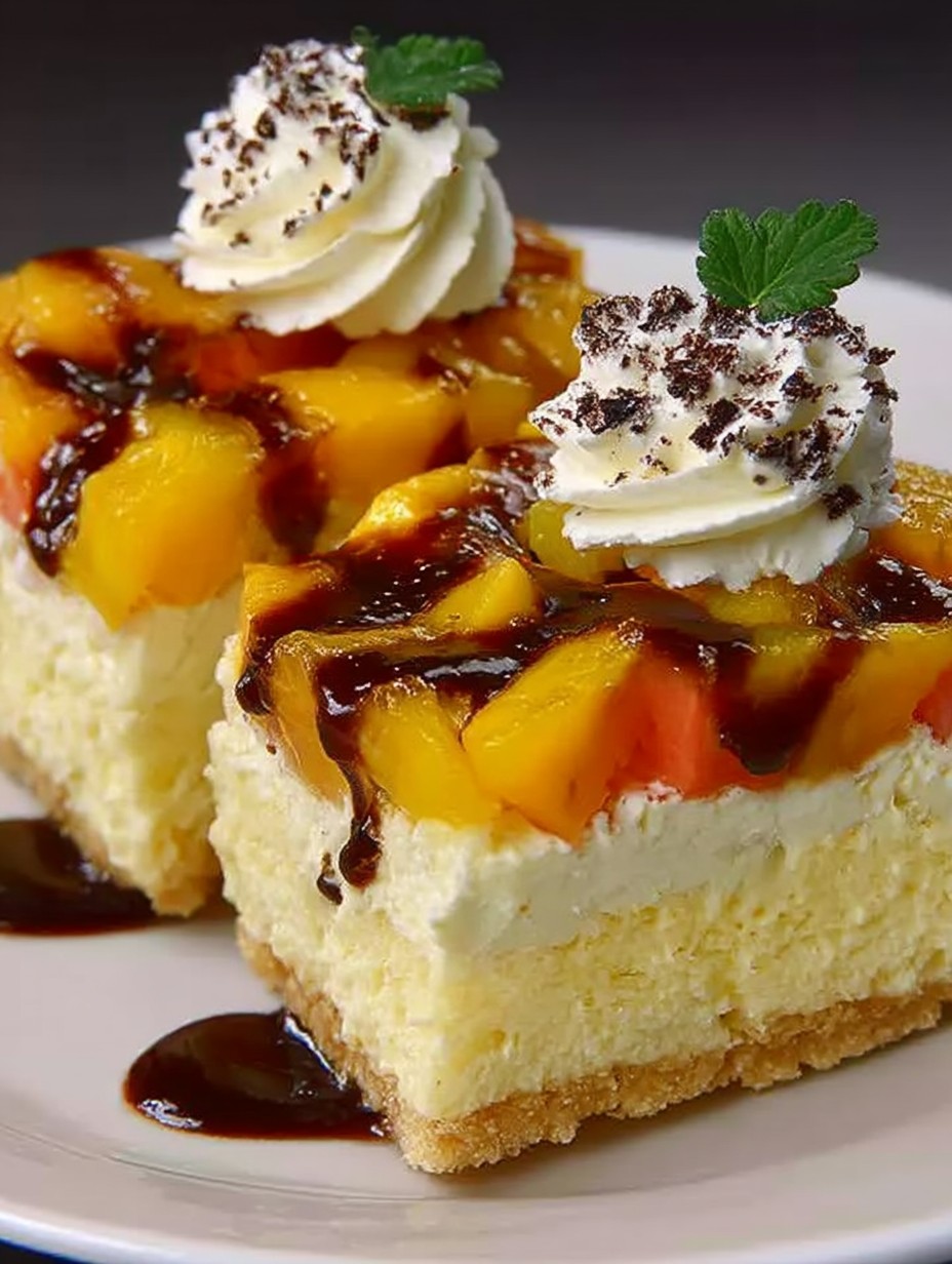 Serviertipp: Schneiden Sie die Schnitten nach dem Kühlen in gleichmäßige Stücke und garnieren Sie sie mit frischen Minzblättern oder einer weiteren Auswahl an Früchten für einen zusätzlichen Farbtupfer!