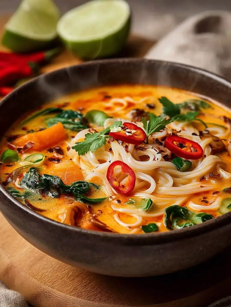Die Aromen einer frischen, veganen Curry-Suppe mit Kokosmilch und Reisnudeln verströmen eine exotische Wärme, die einen sofort in die tropischen Gefilde entführt. Die cremige Konsistenz der Kokosmilch vereint sich mit …