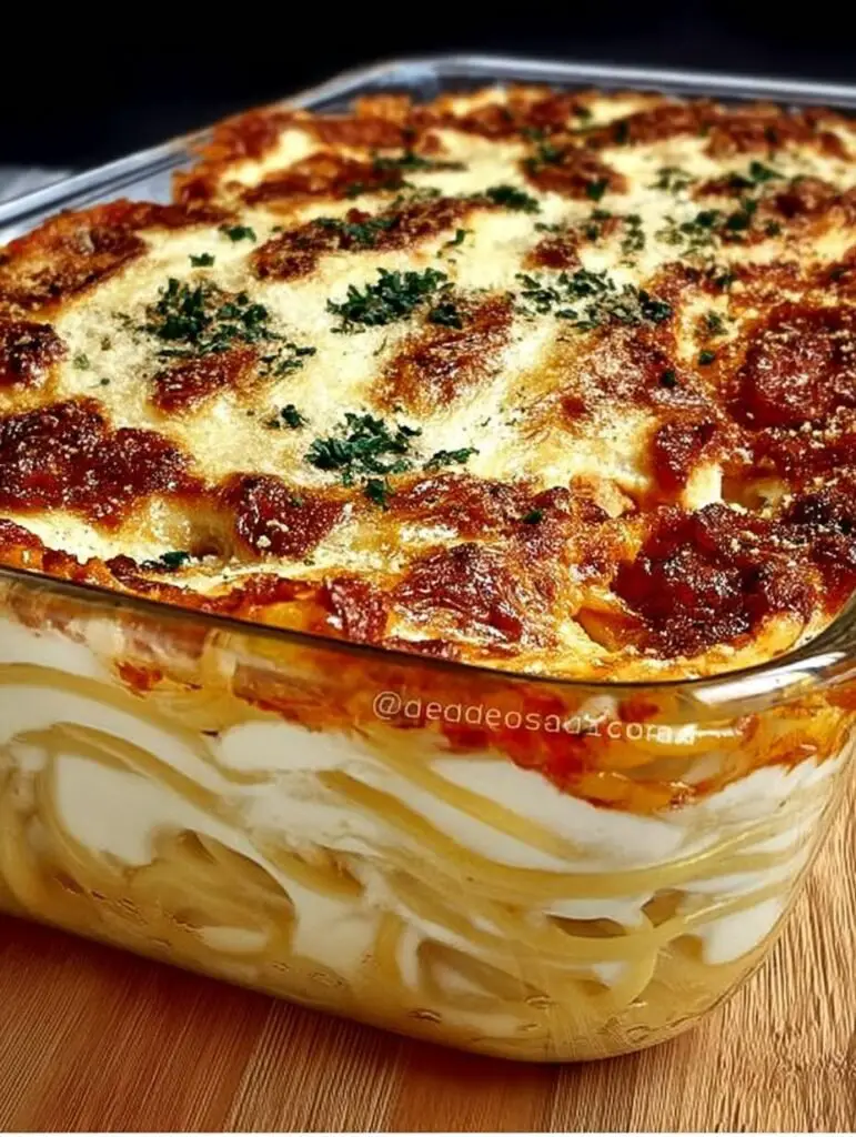 Wenn der köstliche Duft von geschmolzenem Käse und würzigen Tomaten durch die Küche zieht, kann sich niemand zurückhalten – das ist der Moment, in dem „Wenn ich diesen Auflauf ankündigt, …