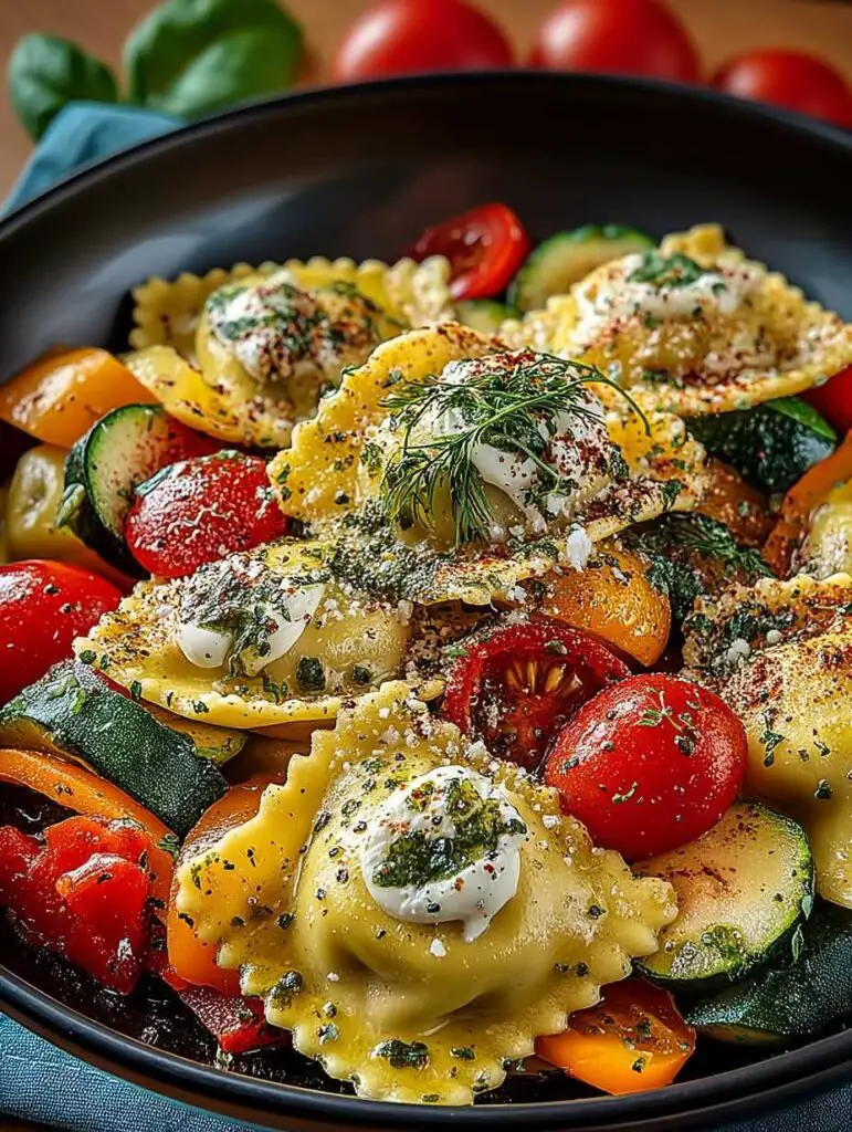 Die BUNTE RAVIOLI-GEMÜSE-PFANNE ist ein Fest für die Sinne: Stellen Sie sich zarte, leuchtende Ravioli vor, die in einer bunten Mischung aus knackigem Gemüse schwelgen. Die Aromen tanzen auf Ihrer …