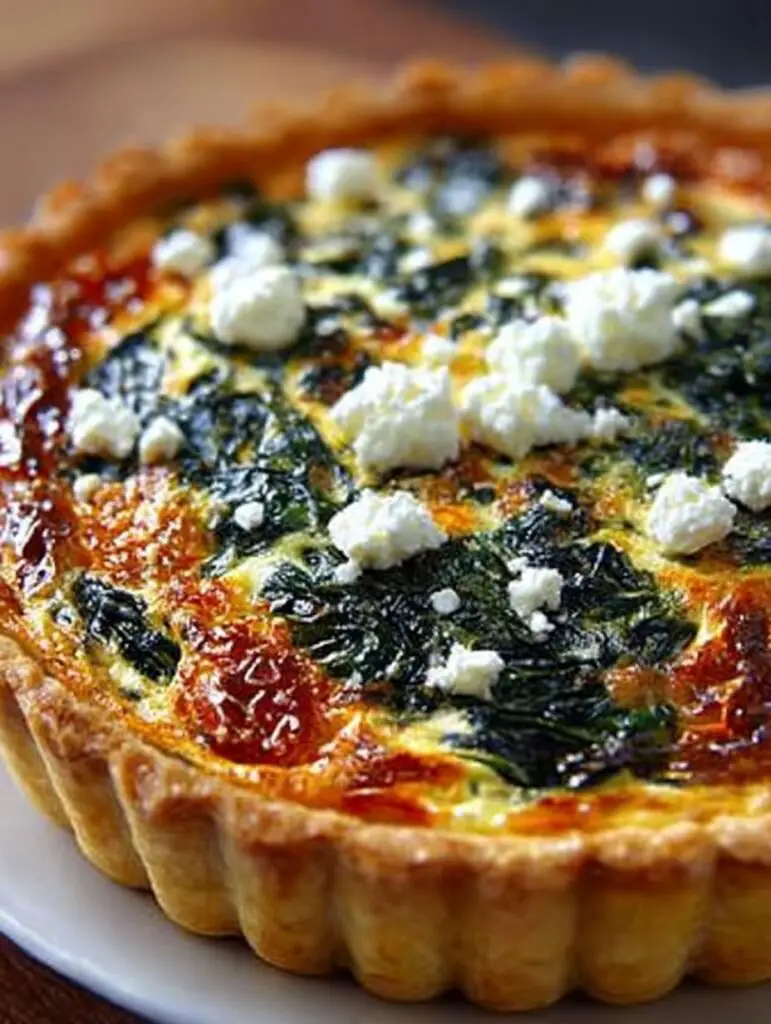 Einfaches Rezept für Hüttenkäse Spinat Quiche