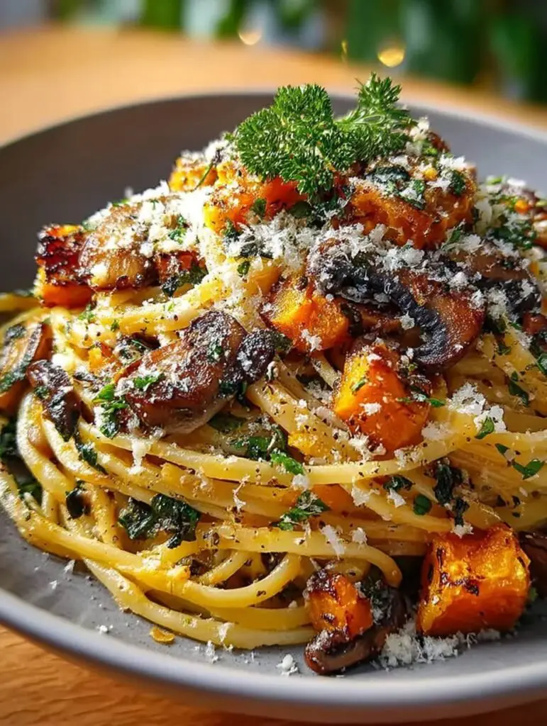 Die HERBSTLICHE KÜRBIS-PILZ-PASTA ist ein Fest der Farben und Aromen, das die herbstliche Stimmung perfekt einfängt. Die cremige Sauce umhüllt al dente Pasta, während die süßen Kürbisstücke und erdigen Pilze …