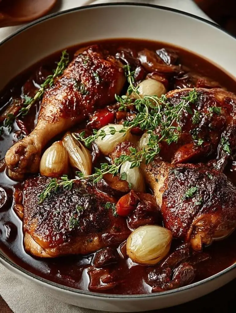 Die Aromen eines klassischen Coq au Vin entfalten sich wie eine sanfte Umarmung für die Sinne – saftiges Hühnchen, umhüllt von einer reichhaltigen, tiefroten Sauce, die mit dem Aroma von …
