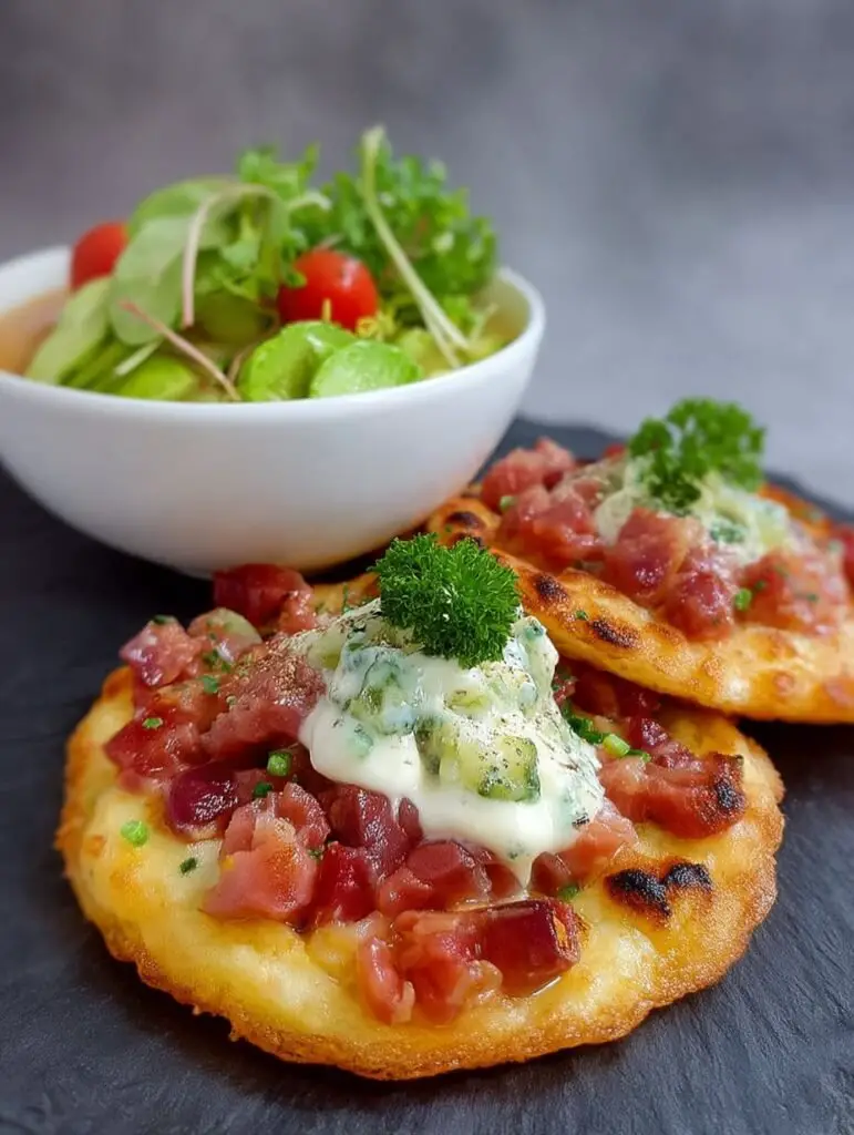 Knusprige, goldbraune Teigschichten, die mit einer cremigen Mischung aus frischem Gemüse und zartem Hähnchenfilet belegt sind – das ist der LOW CARB FLAMMKUCHEN! Die Aromen tanzen auf der Zunge und …