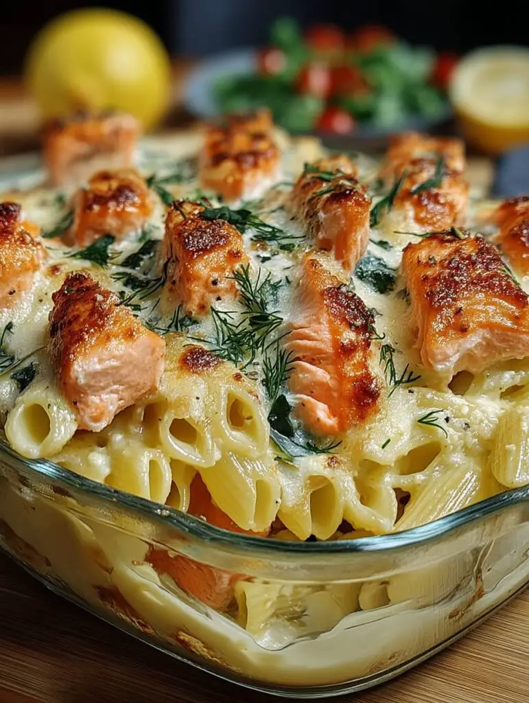 Nudelauflauf mit Lachs und Sahne