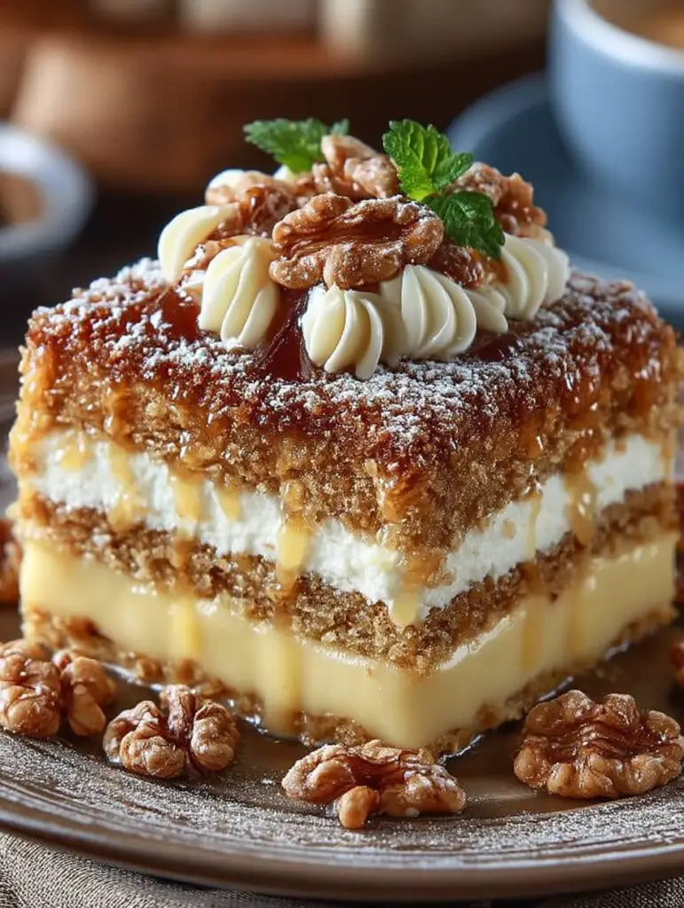 Die Kombination aus zartem Pudding und knackigen Walnüssen, die in einer luftigen Kuchenschicht gebettet ist, wird Ihnen den Mund wässrig machen. Stellen Sie sich vor, wie jeder Bissen eine süße …