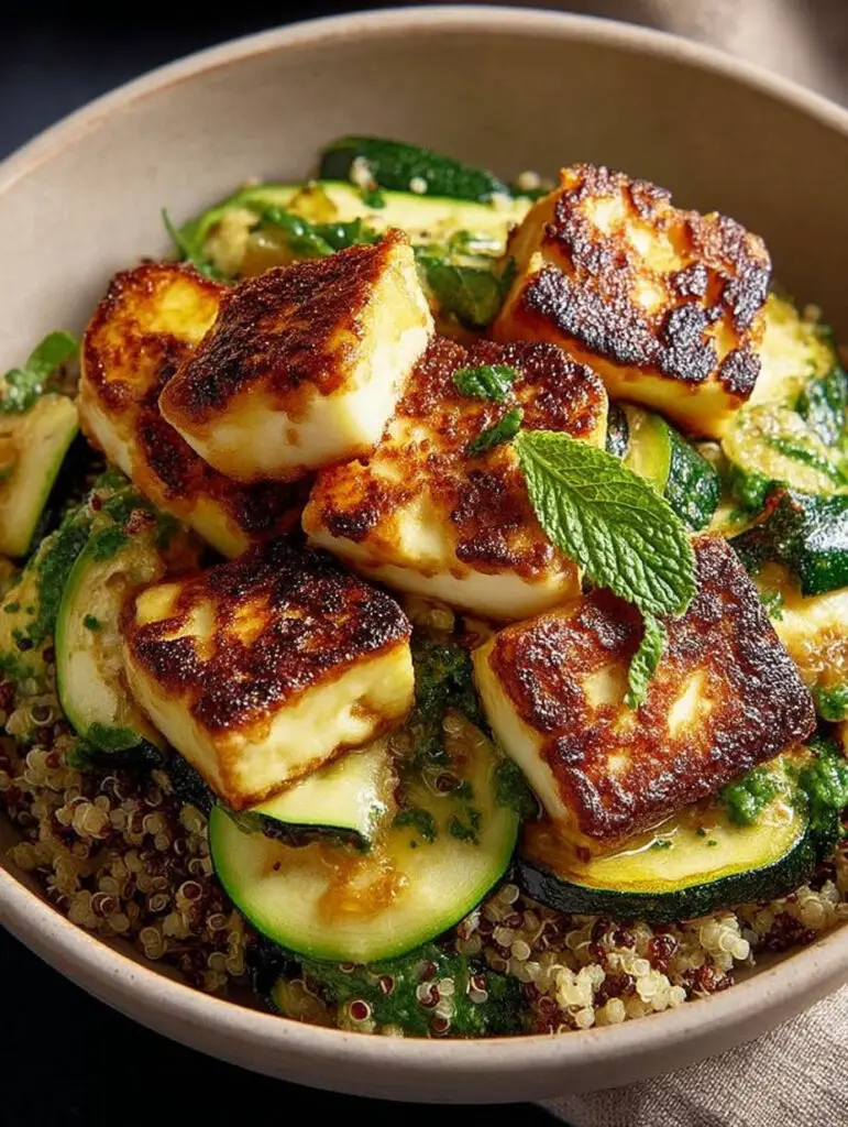 Die Halloumi-Quinoa-Bowl mit gebratener Zucchini ist wie ein Fest für die Sinne: Knuspriger Halloumi trifft auf die zarte, leicht rauchige Zucchini und die nussige Quinoa, während frische Kräuter den Geschmack …