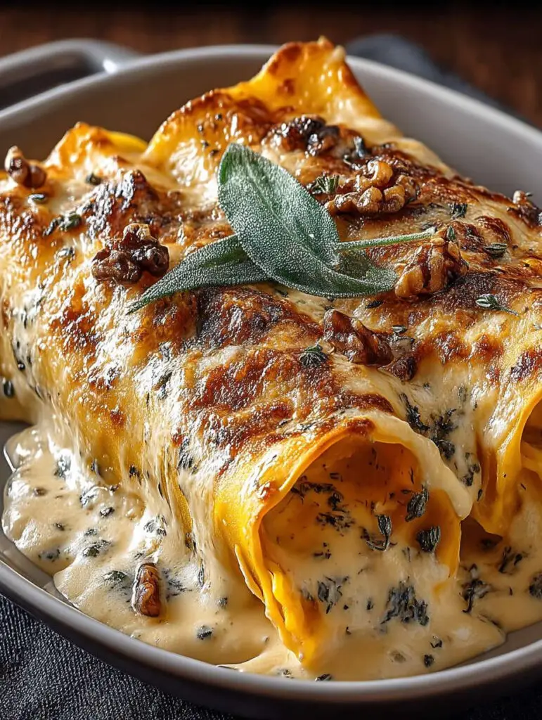 Butternut-Kürbis-Cannelloni mit Walnuss-Salbei-Béchamelsoße